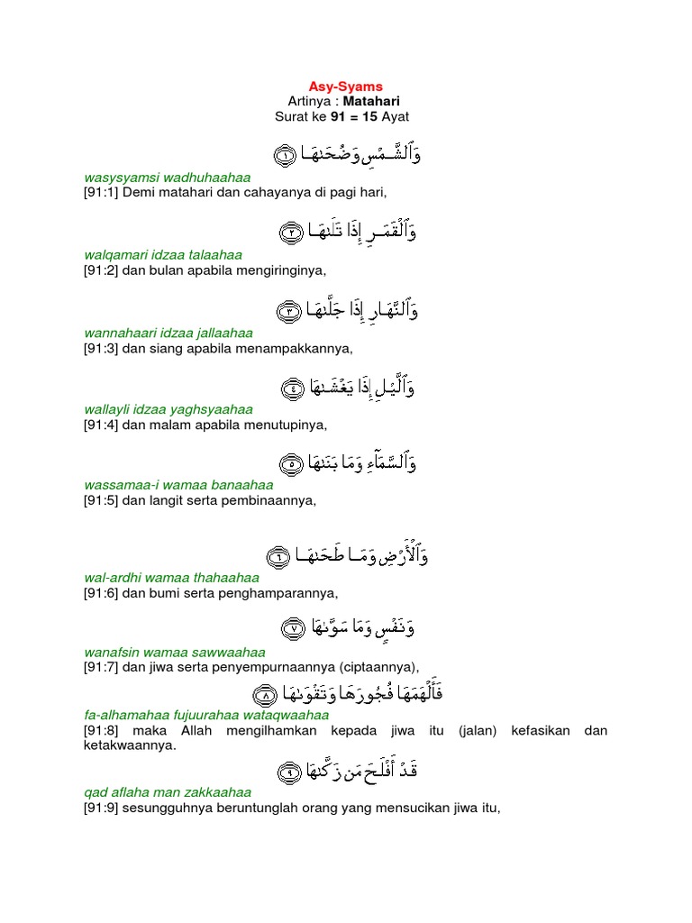 | Judul Surah: Surat Asy Syams Ayat 1 15 Arab Latin Dan Arti Terjemahan Juz Amma |